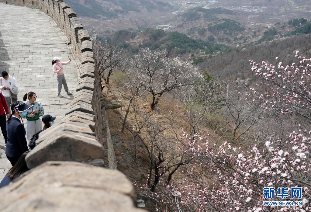 近日,隨著氣溫逐步回升,北京慕田峪長城山花爛漫,春意漸濃。