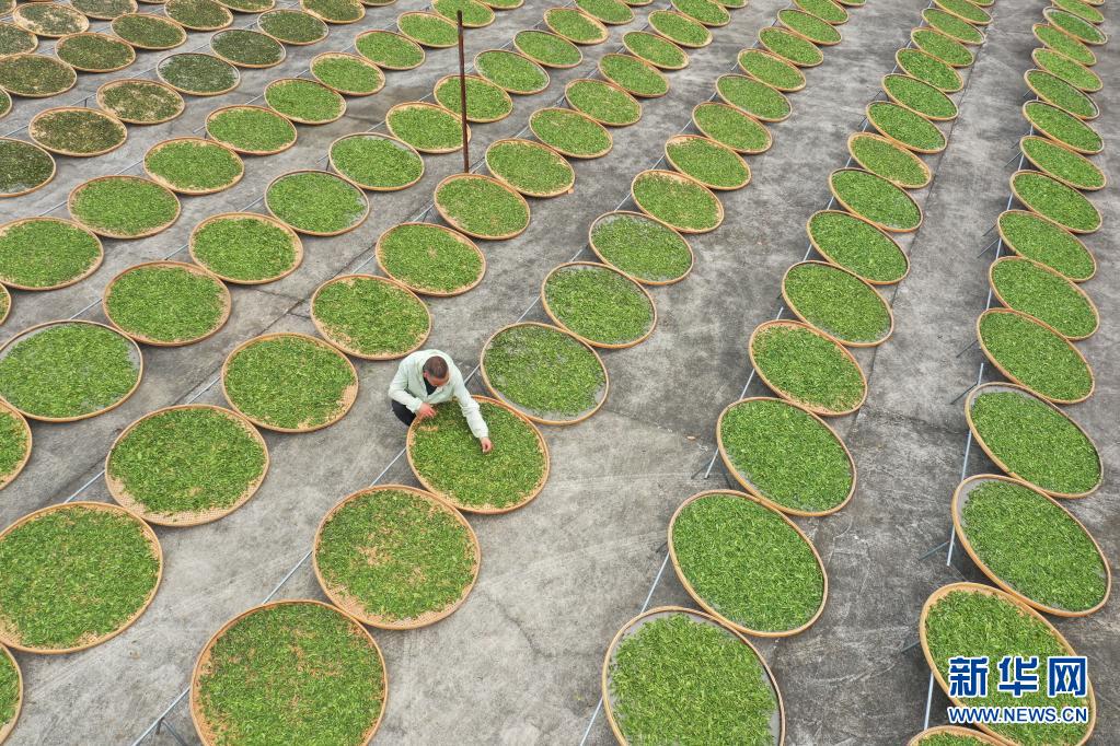 4月2日,制茶師傅在福鼎市佳陽(yáng)畬族鄉(xiāng)的一家茶企業(yè)內(nèi)攤放茶青。新華社記者 林善傳 攝