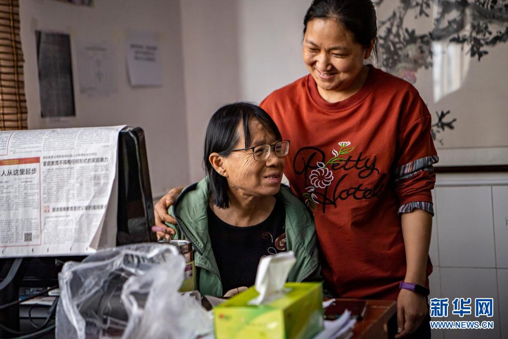 在華坪兒童福利院長(zhǎng)大的雷秋鳳(右)來(lái)探望張桂梅(3月25日攝)。新華社記者 江文耀 攝