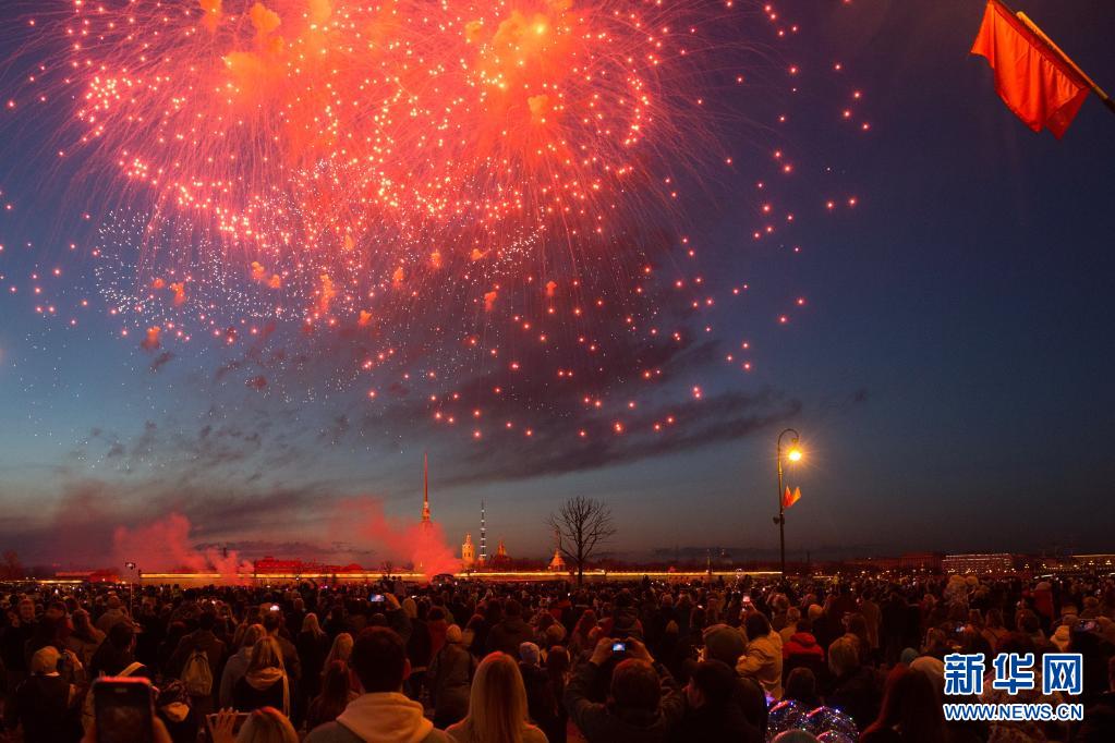 圣彼得堡燃放煙花紀(jì)念衛(wèi)國(guó)戰(zhàn)爭(zhēng)勝利76周年