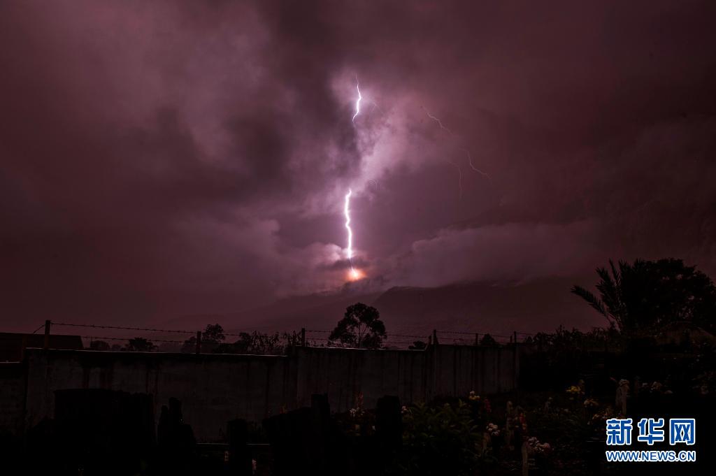 這是5月13日在印度尼西亞北蘇門答臘省拍攝的錫納朋火山上空的閃電(長時(shí)間曝光照片)。