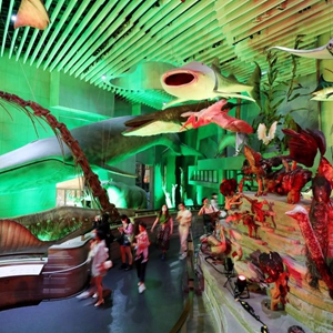 5月18日,參觀者在上海自然博物館生命長(zhǎng)河展區(qū)參觀。
