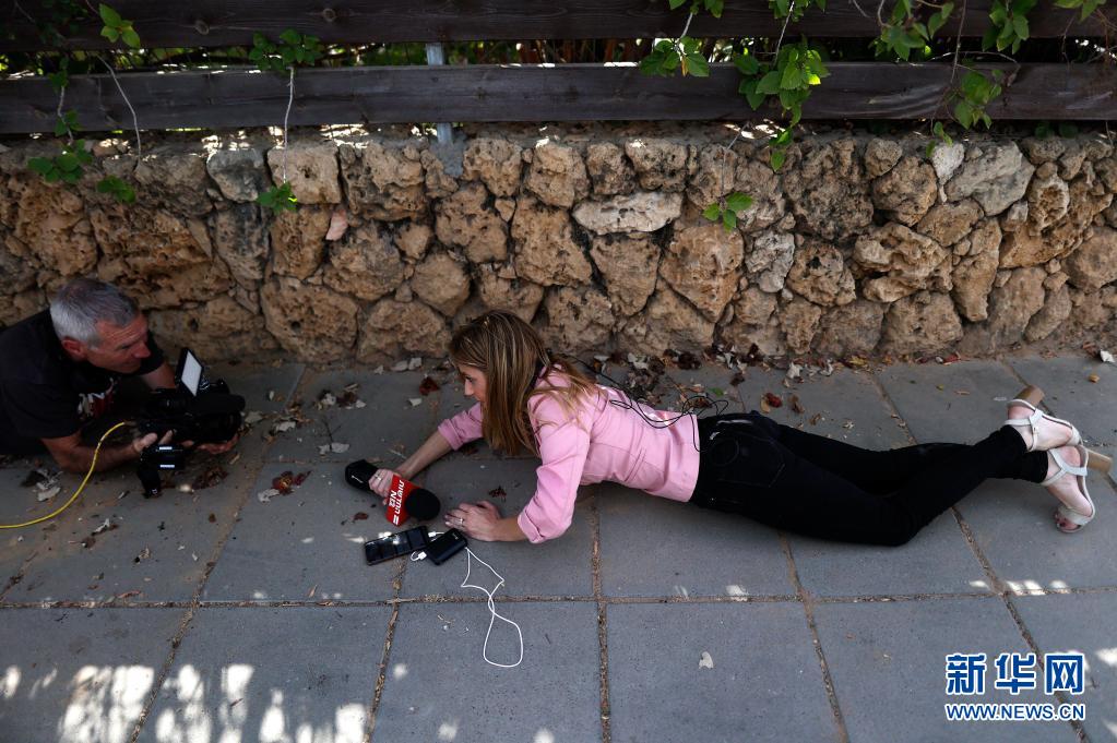 5月20日,人們?cè)谝陨心喜砍鞘邪⑹矂P隆接到火箭彈襲擊警報(bào)后就地躲避。