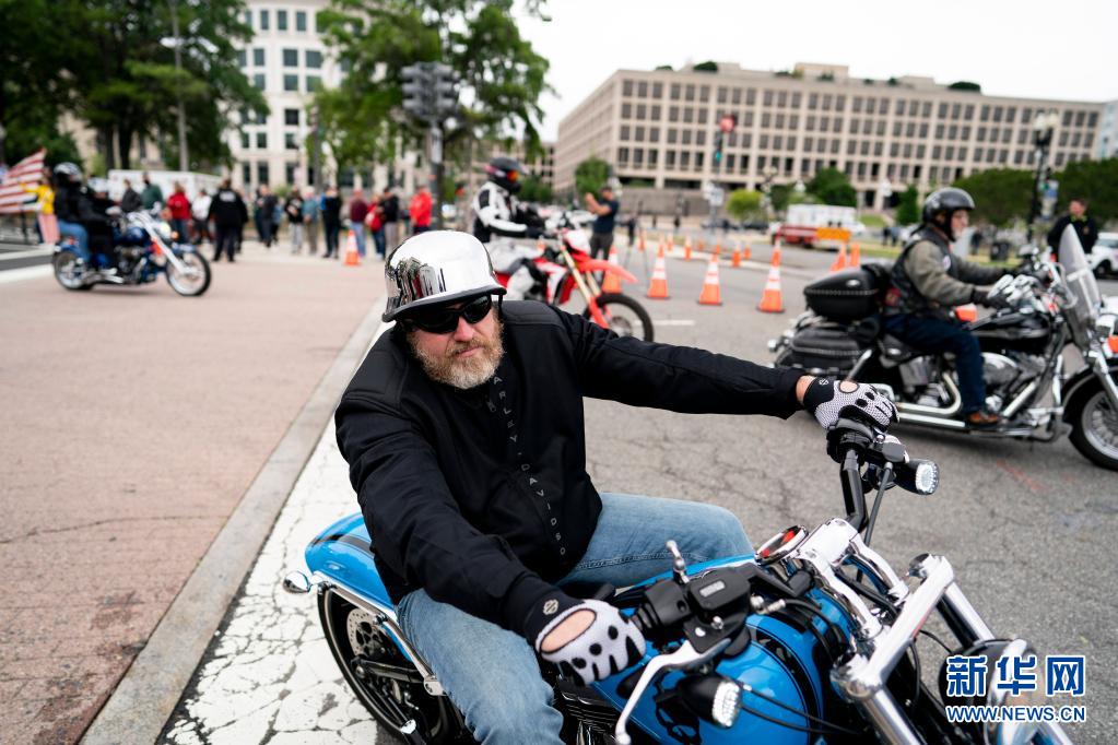 5月30日,在美國(guó)首都華盛頓,人們參加“滾雷”摩托車大游行。
