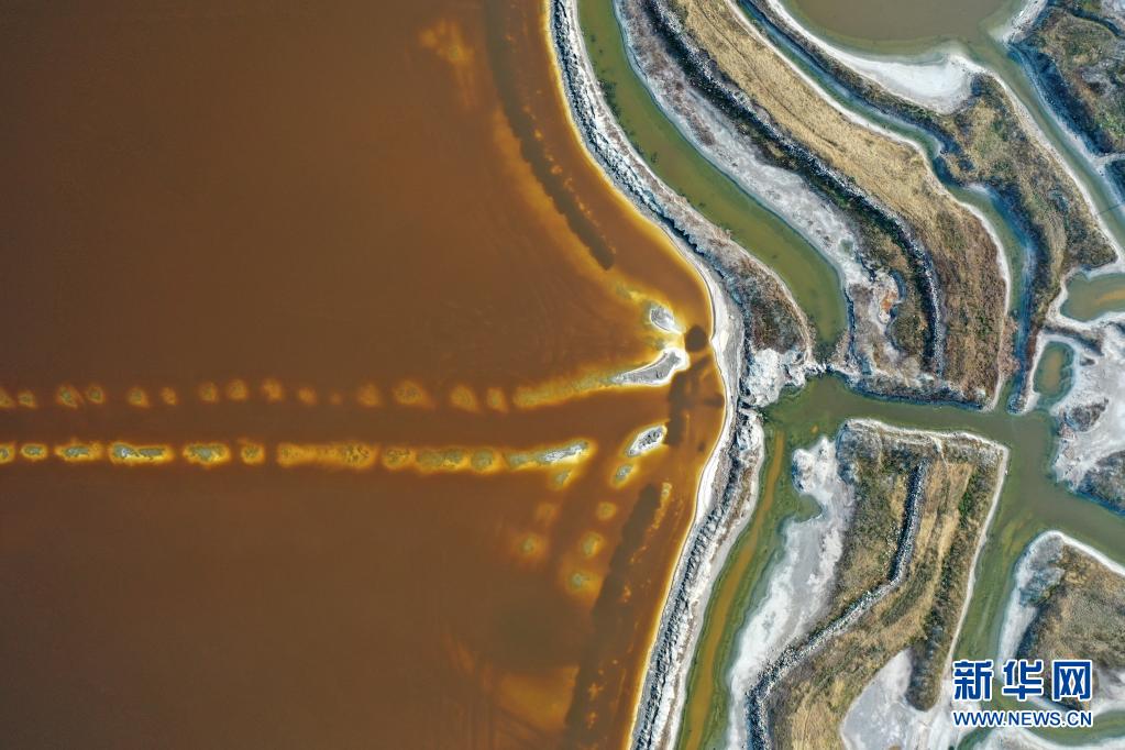 近日,隨著氣溫不斷升高,山西運城鹽湖呈現(xiàn)五彩斑斕的景象。