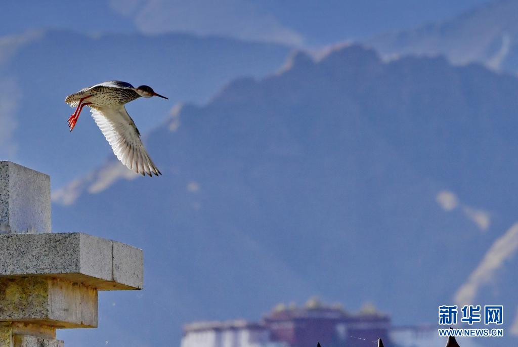 初夏,紅腳鷸在位于西藏拉薩的拉魯濕地國家級(jí)自然保護(hù)區(qū)內(nèi)起舞覓食。