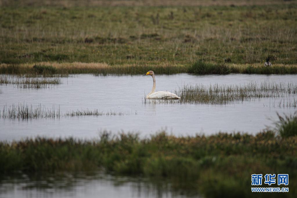 這是6月2日在甘肅省甘南藏族自治州碌曲縣尕海湖拍攝的國家二級保護(hù)動(dòng)物大天鵝。