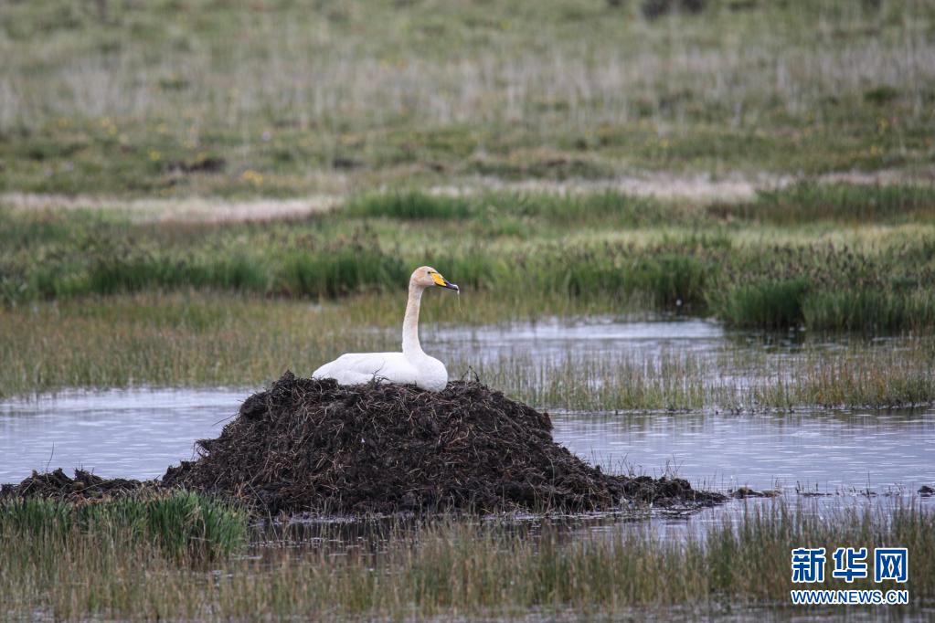 這是6月2日在甘肅省甘南藏族自治州碌曲縣尕海湖拍攝的國(guó)家二級(jí)保護(hù)動(dòng)物大天鵝。