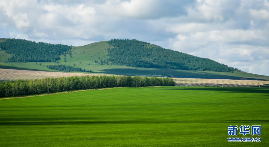 這是內(nèi)蒙古呼倫貝爾332國(guó)道旁的森林草原風(fēng)光(6月10日攝)。