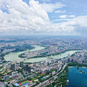 這是南寧市邕江、南湖及周邊建筑(6月14日攝,無人機(jī)照片)。