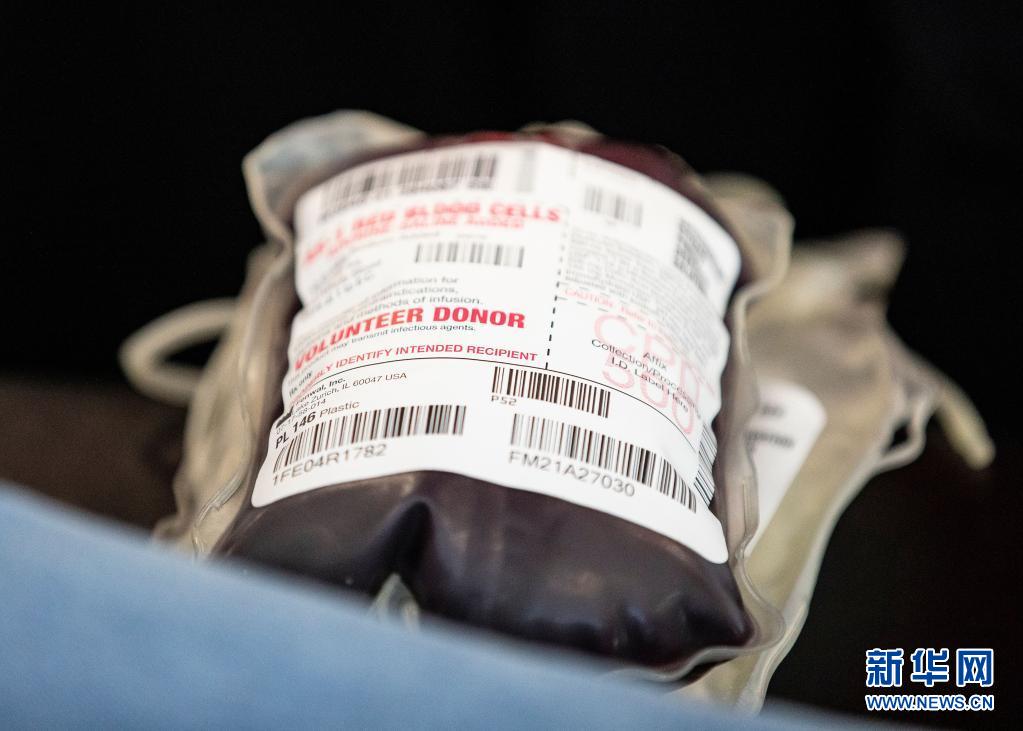 這是6月14日在美國芝加哥的大芝加哥地區(qū)紅十字會(huì)一獻(xiàn)血站內(nèi)拍攝的血袋。新華社發(fā)(喬爾·萊納攝)