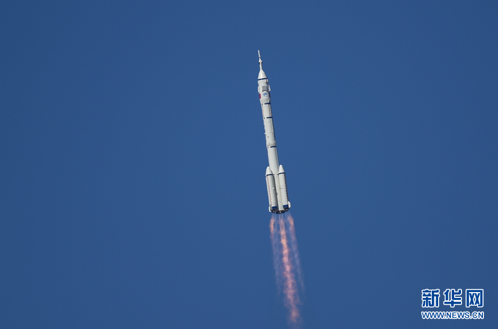 6月17日,搭載著神舟十二號(hào)載人飛船的長(zhǎng)征二號(hào)F遙十二運(yùn)載火箭在酒泉衛(wèi)星發(fā)射中心點(diǎn)火升空。新華社記者 連振 攝