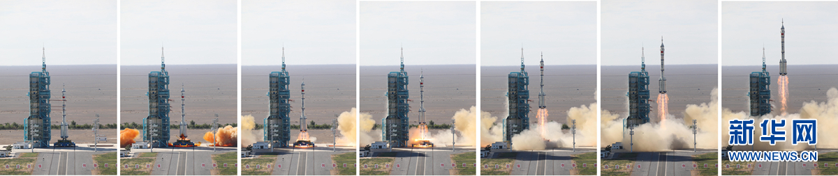 6月17日,搭載著神舟十二號載人飛船的長征二號F遙十二運(yùn)載火箭在酒泉衛(wèi)星發(fā)射中心點(diǎn)火升空。新華社記者 李剛 攝