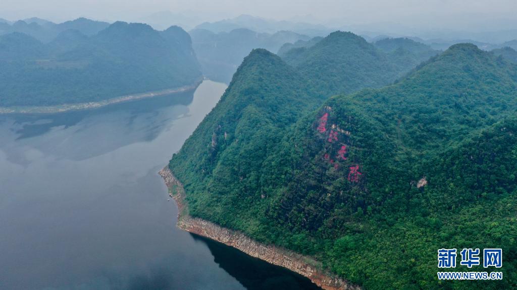 江界河“烏江天險”石刻(5月20日攝,無人機照片)。新華社記者 歐東衢 攝
