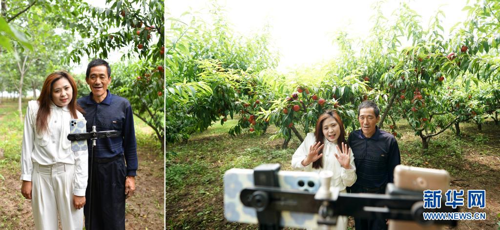 拼版照片:左圖為常阿娟和父親常乃民在山西省長(zhǎng)治市潞州區(qū)東旺村果園里;右圖為常阿娟和父親常乃民通過(guò)網(wǎng)絡(luò)直播介紹自家種的水果(7月7日攝)。今年28歲的常阿娟原來(lái)在一家會(huì)計(jì)師事務(wù)所工作,2019年返鄉(xiāng)和父母一起打理果園。近兩年,常阿娟抓住網(wǎng)絡(luò)直播的熱潮,把鏡頭聚焦田間地頭,澆水、施肥、剪枝現(xiàn)場(chǎng)都成了她的“直播間”。借助網(wǎng)絡(luò)的力量,常阿娟家的產(chǎn)品不愁銷路,找她代售農(nóng)產(chǎn)品的村民也越來(lái)越多。