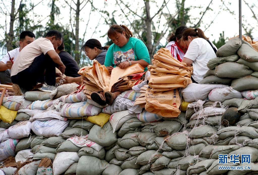 當(dāng)日,在河南省鶴壁市??h傅莊堤上,不少群眾自發(fā)前來和救援人員一起裝沙袋、運(yùn)沙袋,共筑堤壩。受持續(xù)強(qiáng)降雨影響,浚縣防汛形勢嚴(yán)峻,傅莊堤主要為浚縣縣城及26個(gè)村莊提供保護(hù)。新華社記者 李安 攝