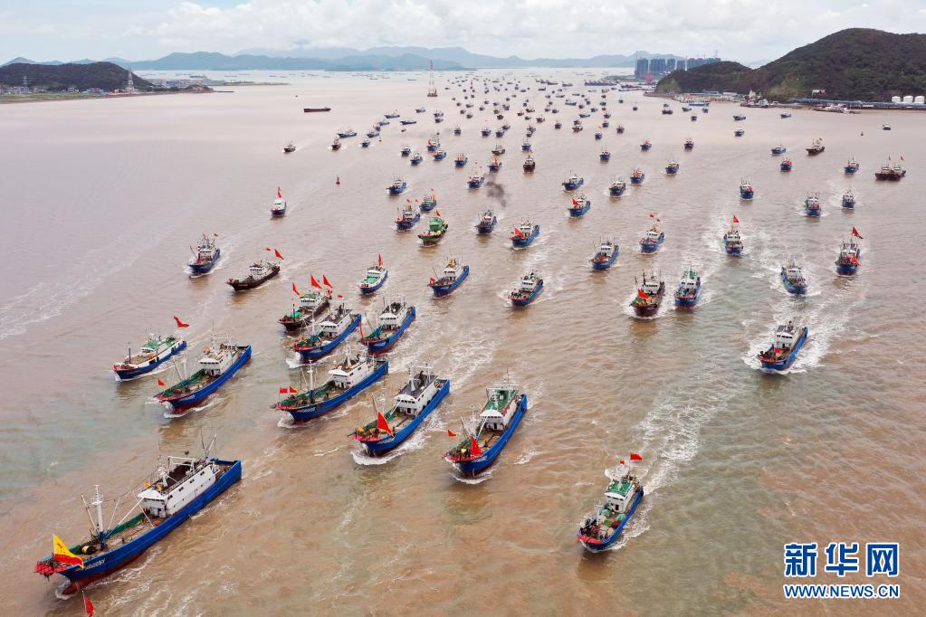 當日中午12時,浙江沿海地區(qū)的部分漁船結(jié)束伏季休漁,駛出漁港,奔赴漁場。