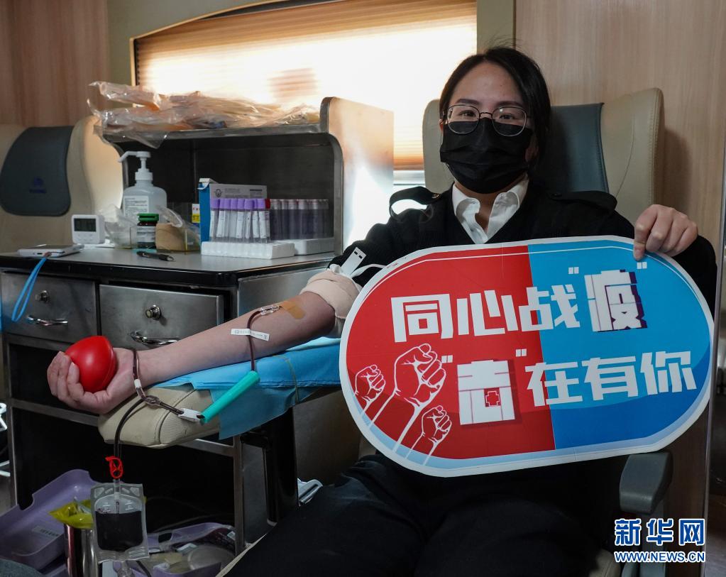 2020年3月5日,杭州海關青年關員在獻血車上獻血。新華社發(fā)(趙凡瑜 攝)