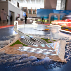 这是在“筑基强国路——中国制造‘十四五’成就展”上展出的深中通道模型(12月29日摄)。