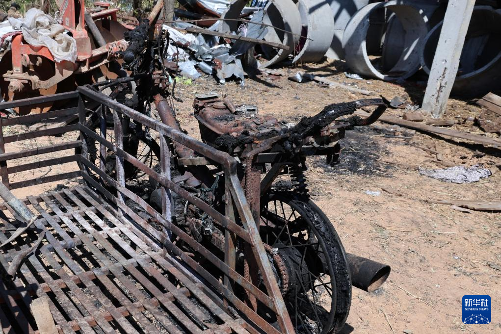 这是12月29日在泰国沙缴府临近柬埔寨的边境地区拍摄的在冲突中遭焚毁的摩托车。