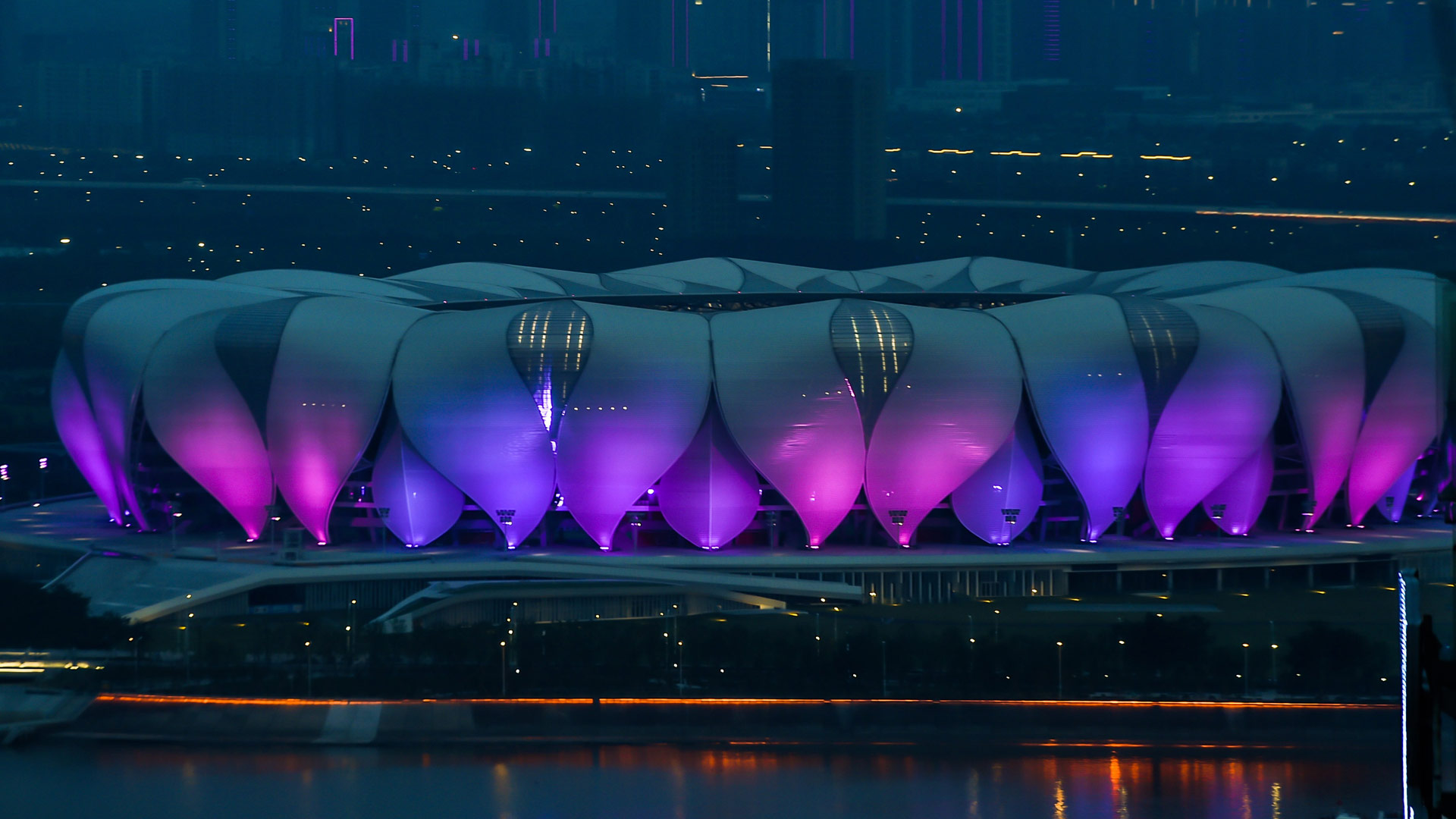 杭州奧體中心主體育場被彩燈點(diǎn)亮(8月31日攝)。新華社記者 徐昱 攝