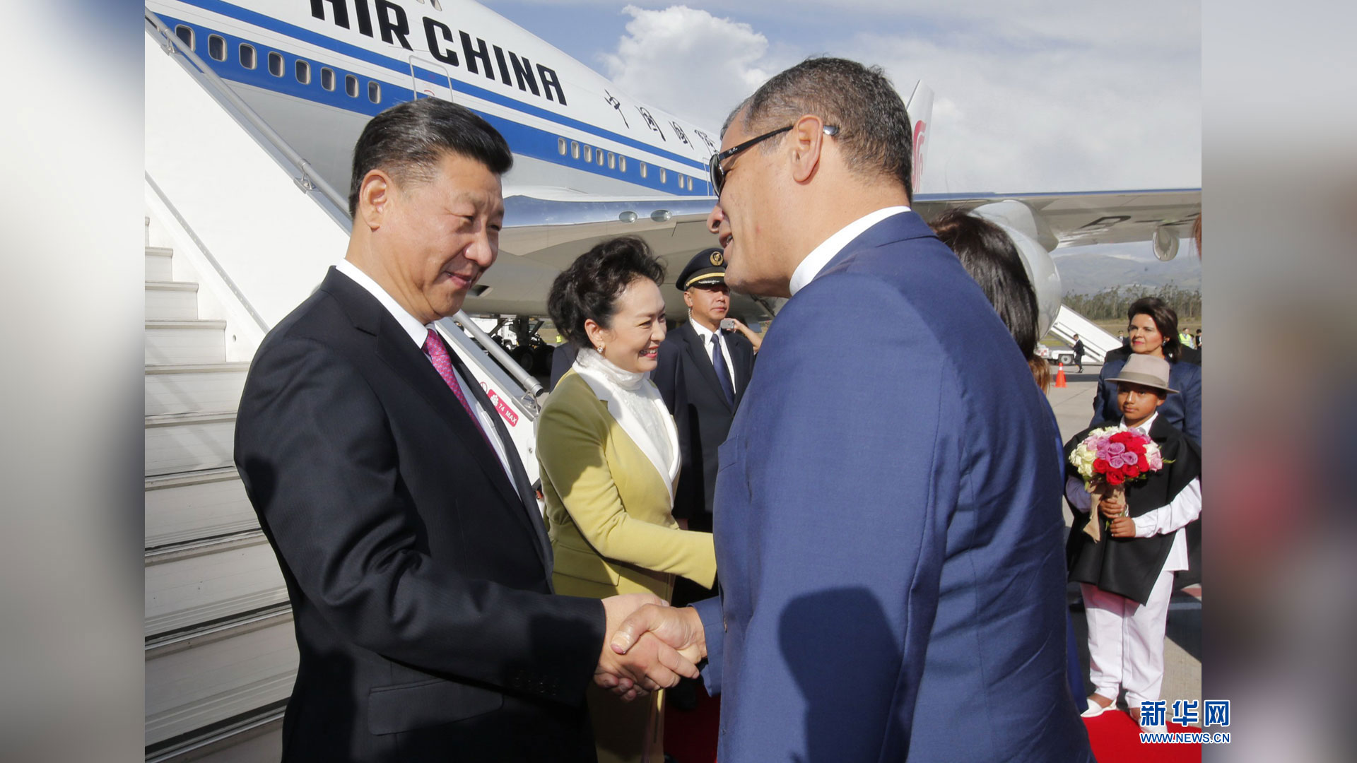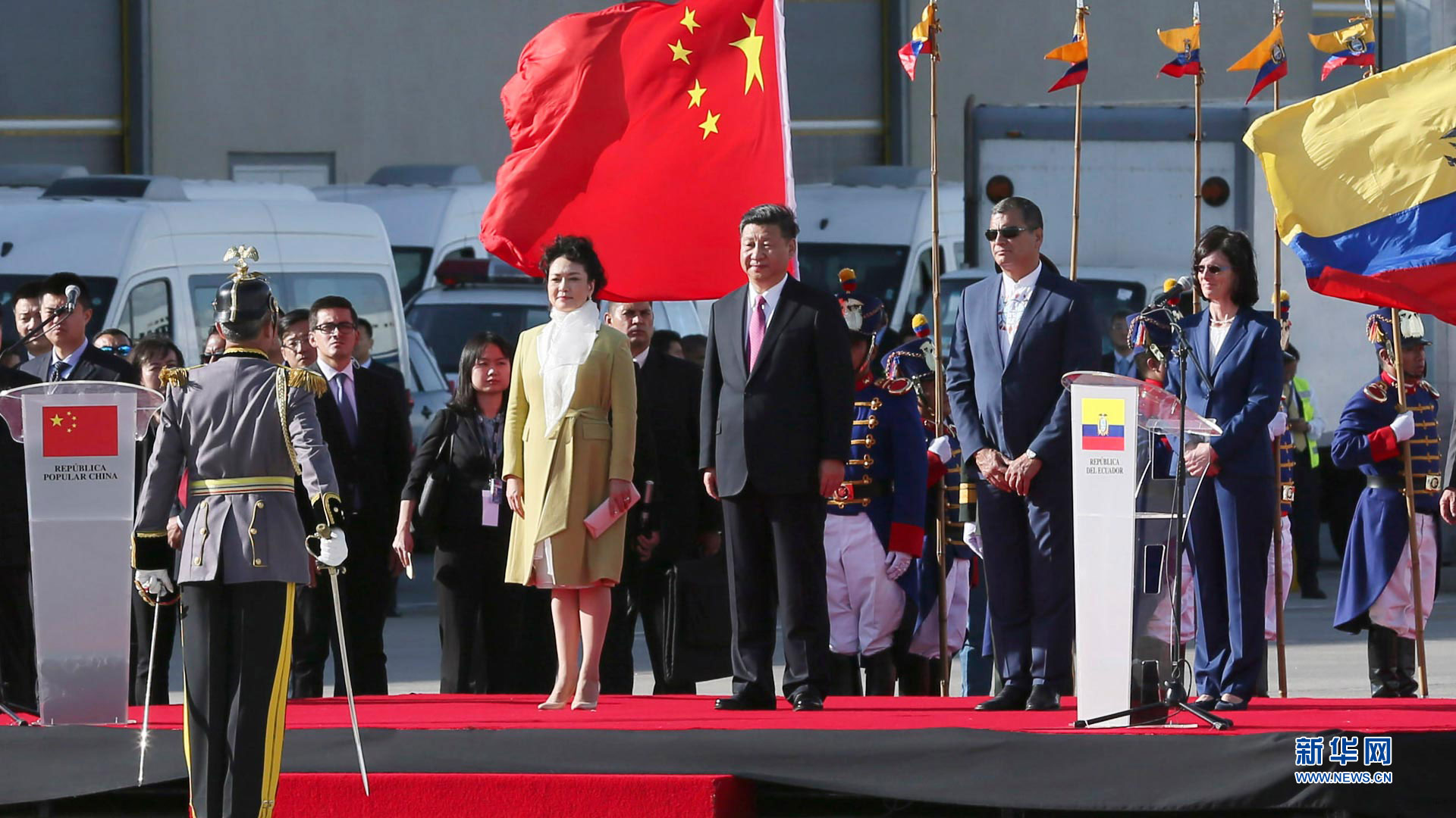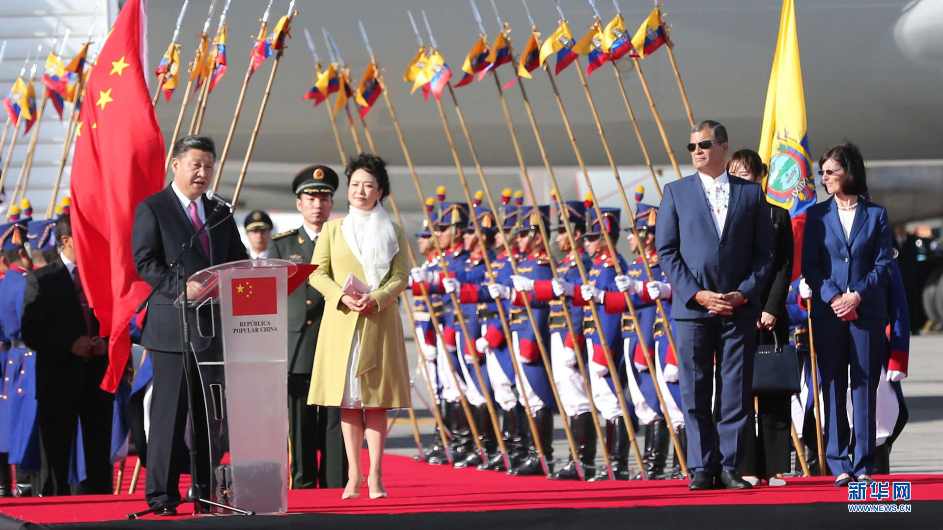 當(dāng)?shù)貢r間11月17日,國家主席習(xí)近平乘專機抵達基多,開始對厄瓜多爾共和國進行國事訪問。厄瓜多爾總統(tǒng)科雷亞和夫人馬勒布等在機場熱情迎接習(xí)近平和夫人彭麗媛。新華社記者 鞠鵬 攝2016-11-18