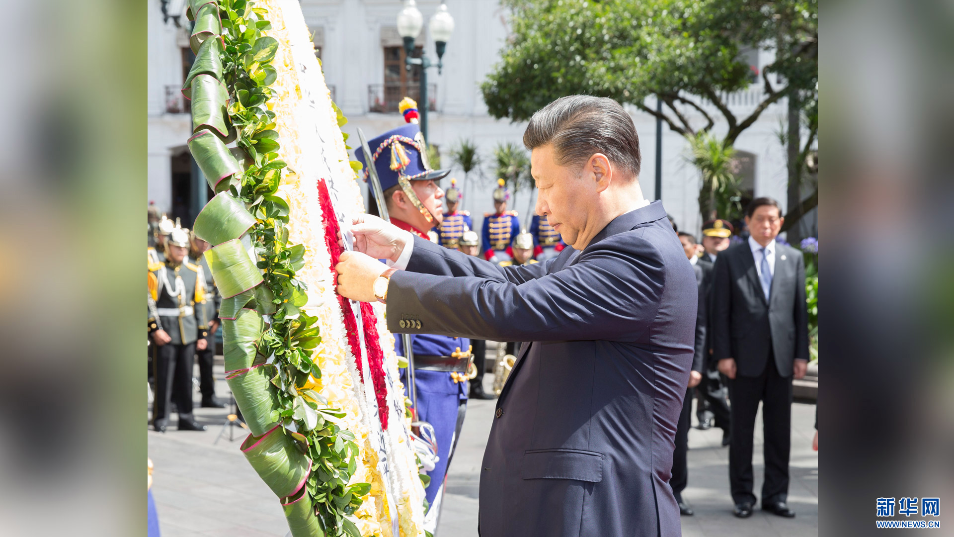 當(dāng)?shù)貢r間11月18日,國家主席習(xí)近平向厄瓜多爾獨立英雄紀(jì)念碑敬獻花圈。 新華社記者 黃敬文 攝2016-11-19