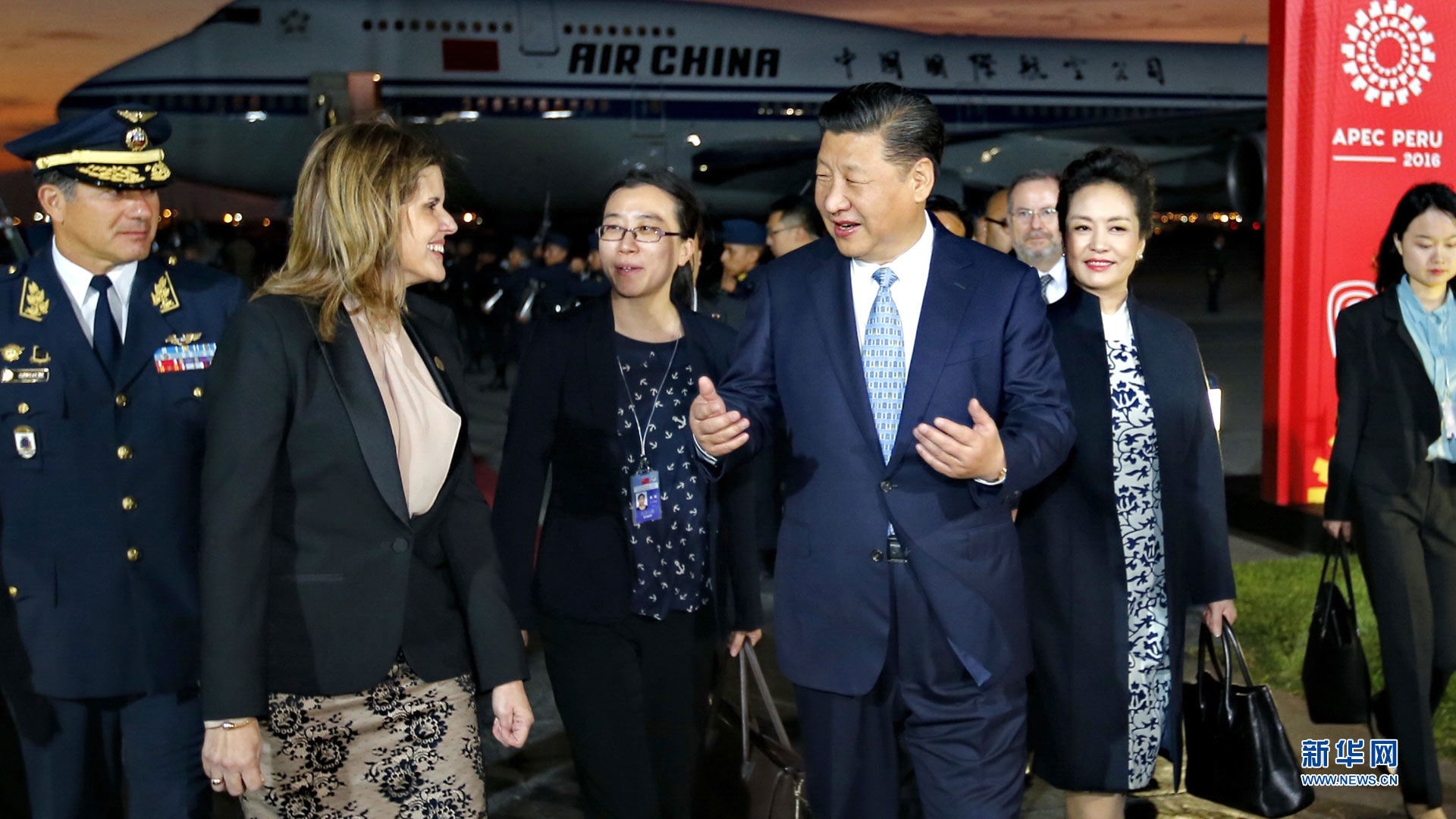 當(dāng)?shù)貢r間11月18日,國家主席習(xí)近平抵達利馬,出席亞太經(jīng)合組織第二十四次領(lǐng)導(dǎo)人非正式會議并對秘魯共和國進行國事訪問。習(xí)近平和夫人彭麗媛受到秘魯副總統(tǒng)阿勞斯等熱情迎接。新華社記者 鞠鵬 攝2016-11-20