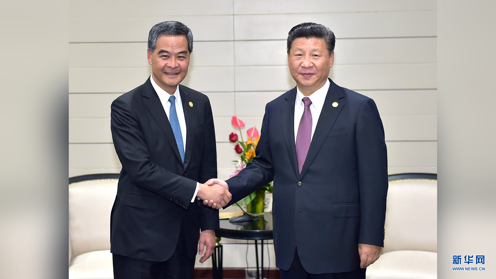 11月20日,國家主席習(xí)近平在秘魯首都利馬會見前來出席亞太經(jīng)合組織第二十四次領(lǐng)導(dǎo)人非正式會議的香港特別行政區(qū)行政長官梁振英。新華社記者 李濤 攝2016-11-21