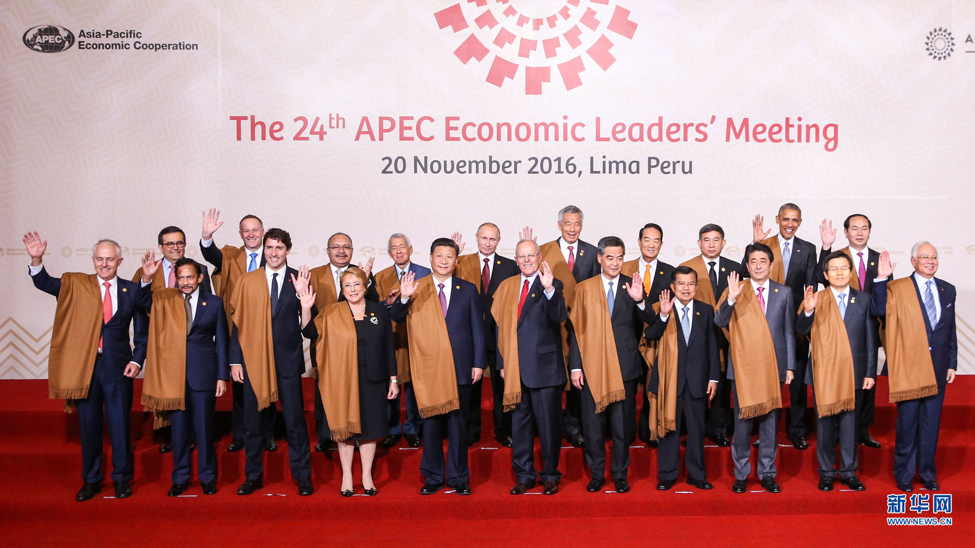 11月20日,亞太經(jīng)合組織第二十四次領(lǐng)導(dǎo)人非正式會議在秘魯利馬舉行。國家主席習(xí)近平出席并發(fā)表題為《面向未來開拓進取促進亞太發(fā)展繁榮》的重要講話。這是會議期間,國家主席習(xí)近平同其他亞太經(jīng)合組織成員經(jīng)濟體領(lǐng)導(dǎo)人、代表合影。 新華社記者 丁林 攝2016-11-21
