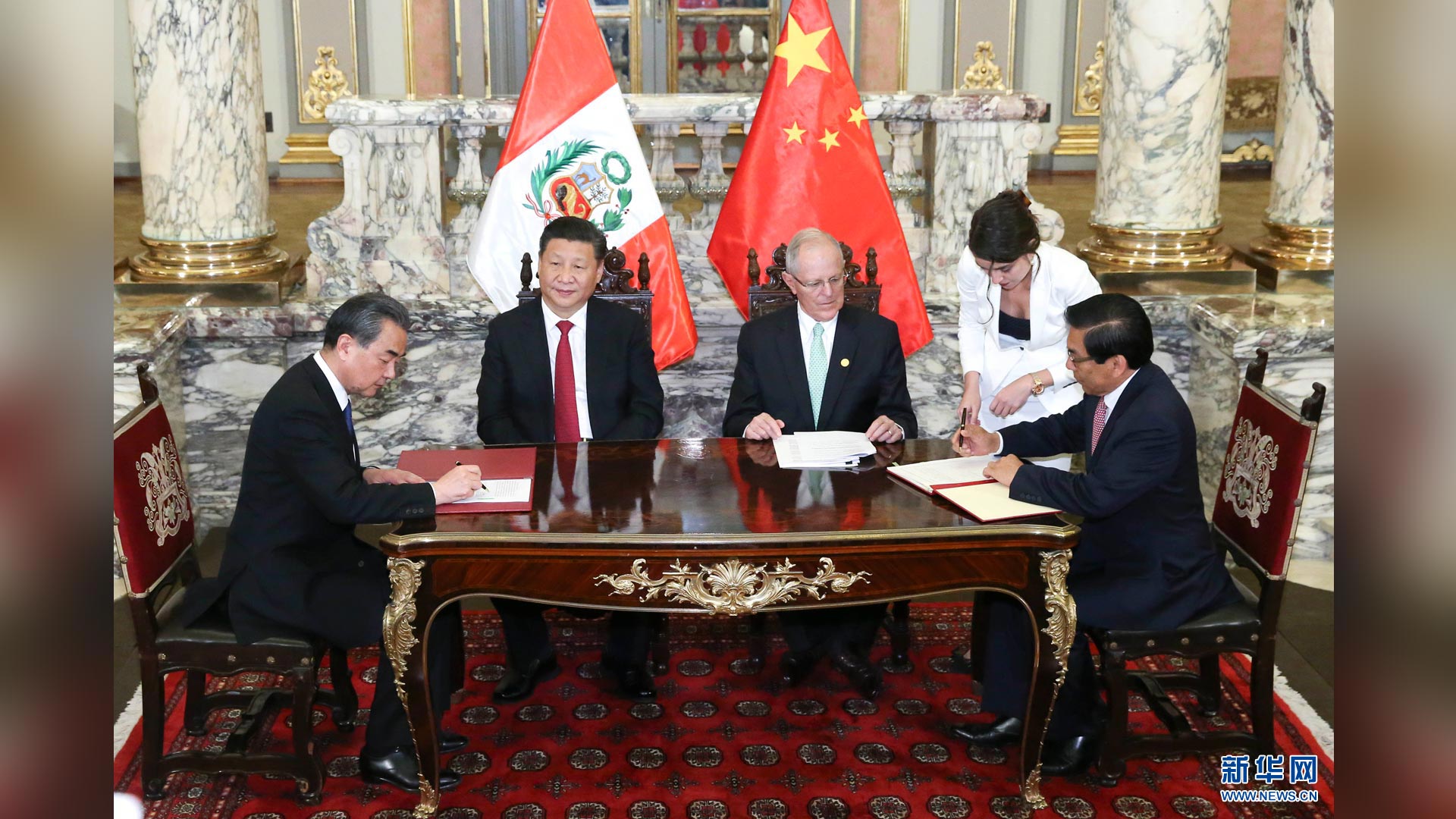 11月21日,國家主席習(xí)近平在利馬同秘魯總統(tǒng)庫琴斯基舉行會談。會談后,兩國元首見證《中華人民共和國政府與秘魯共和國政府2016年至2021年共同行動計劃》等文件的簽署。新華社記者 龐興雷 攝2016-11-23