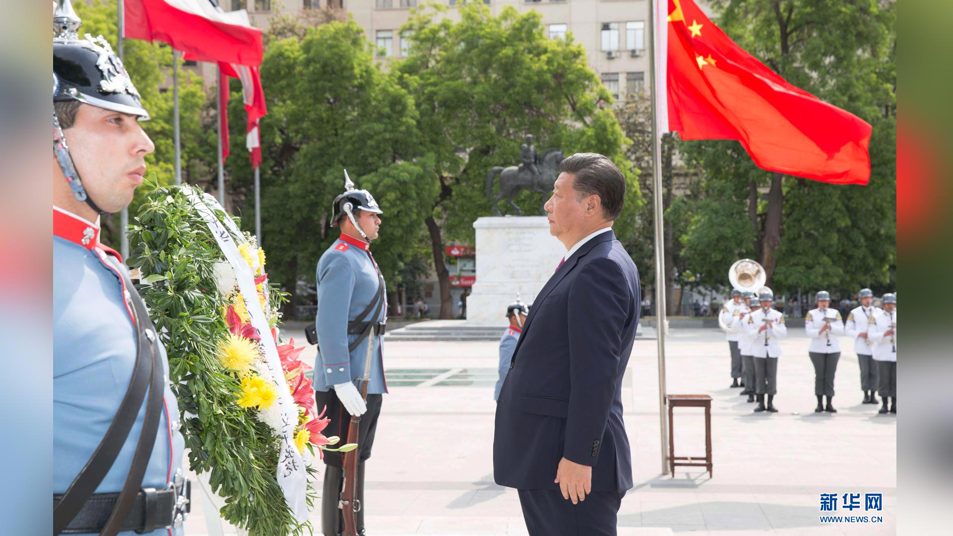 11月22日,國家主席習(xí)近平在圣地亞哥向智利解放者奧希金斯紀(jì)念碑敬獻花圈。 新華社記者 黃敬文 攝2016-11-23