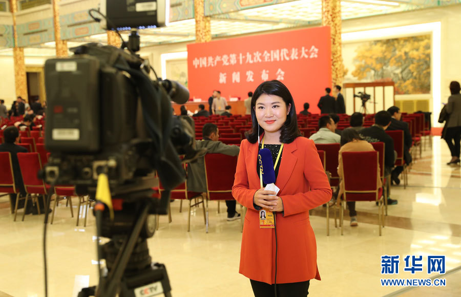 2017年10月17日下午,中國共產黨第十九次全國代表大會新聞發(fā)言人在人民大會堂三樓金色大廳舉行新聞發(fā)布會,并回答中外記者的提問。圖為記者在新聞發(fā)布會現場做準備。新華網 翟子赫 攝