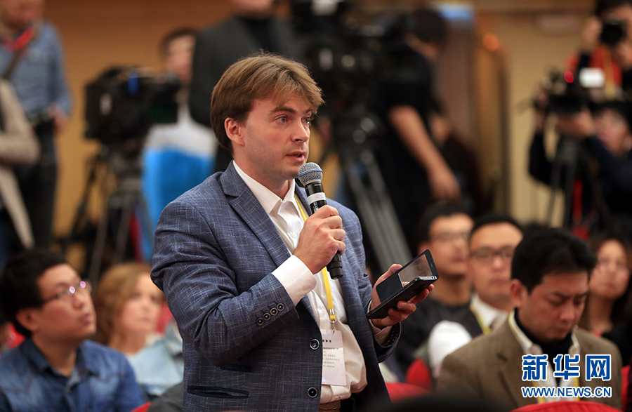 ??? 10月19日,十九大新聞中心舉行記者會(huì),邀請(qǐng)中紀(jì)委、中組部負(fù)責(zé)人介紹黨的建設(shè)和全面從嚴(yán)治黨相關(guān)情況。圖為俄通·塔斯社記者提問。新華網(wǎng) 郝廣鵬攝