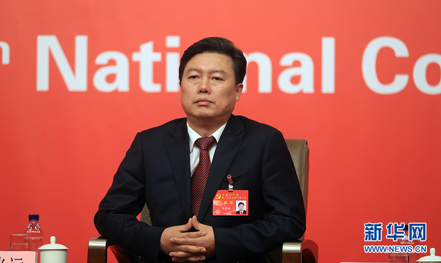 ??? 10月19日,十九大新聞中心舉辦集體采訪,邀請政法戰(zhàn)線代表談全面推進依法治國。圖為江蘇省委政法委副書記、省綜治辦主任朱光遠。新華網(wǎng) 郝廣鵬攝