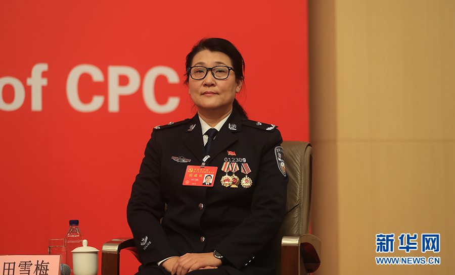 ??? 10月19日,十九大新聞中心舉辦集體采訪,邀請(qǐng)政法戰(zhàn)線代表談全面推進(jìn)依法治國(guó)。圖為公安部物證鑒定中心法醫(yī)病理?yè)p傷技術(shù)處副處長(zhǎng)田雪梅。新華網(wǎng) 郝廣鵬攝