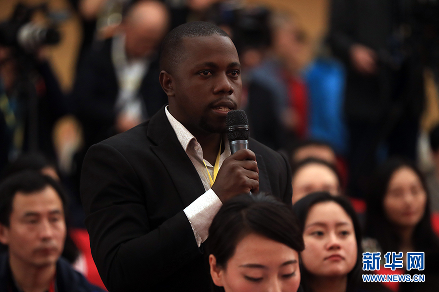 ??? 10月19日,十九大新聞中心舉辦集體采訪,邀請政法戰(zhàn)線代表談全面推進依法治國。圖為烏干達New Vision報紙記者提問。新華網(wǎng) 郝廣鵬攝