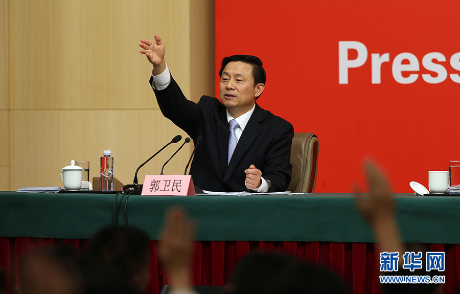??? 10月20日,十九大新聞中心舉行記者會(huì),邀請中宣部、中央文明辦、文化部、新聞出版廣電總局相關(guān)負(fù)責(zé)人介紹加強(qiáng)思想道德和文化建設(shè)情況,并回答記者提問。圖為主持人郭衛(wèi)民。新華網(wǎng) 郝廣鵬 攝