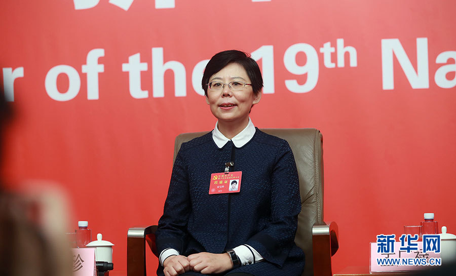 ??? 10月20日,十九大新聞中心舉辦集體采訪活動(dòng),主題為“文化發(fā)展開創(chuàng)新局面”。圖為中國(guó)藝術(shù)研究院話劇研究所所長(zhǎng)宋寶珍。新華網(wǎng) 陳杰攝