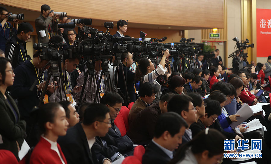 10月22日,十九大新聞中心舉辦記者招待會,邀請教育部黨組書記、部長陳寶生,民政部黨組書記、部長黃樹賢,人力資源社會保障部黨組書記、部長尹蔚民,住房城鄉(xiāng)建設(shè)部黨組書記、部長王蒙徽,國家衛(wèi)生計(jì)生委黨組書記、主任李斌介紹滿足人民新期待,保障改善民生有關(guān)情況,并回答記者提問。圖為現(xiàn)場記者。新華網(wǎng) 郝廣鵬攝