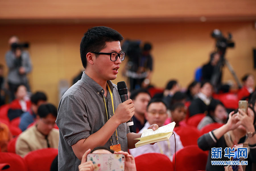 10月23日,十九大新聞中心舉辦集體采訪活動,主題為“打好生態(tài)環(huán)保攻堅戰(zhàn)”。圖為香港商報記者提問。新華網(wǎng) 郝廣鵬攝