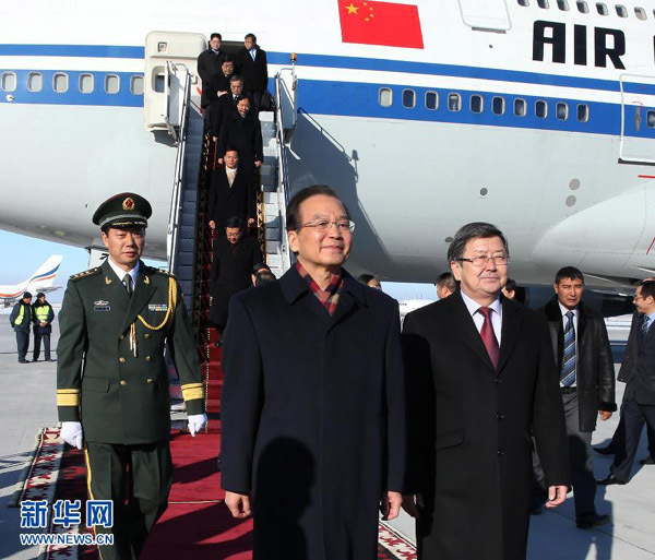 溫家寶抵達比什凱克出席上合組織成員國總理會議并正式訪問吉爾吉斯斯坦