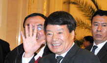 國(guó)土資源部部長(zhǎng)徐紹史進(jìn)入會(huì)場(chǎng)時(shí)向本網(wǎng)記者招手