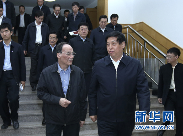 ??? 4月11日,中共中央政治局常委、中央紀委書記王岐山在中央直屬機關(guān)工委調(diào)研。 新華社記者 龐興雷 攝