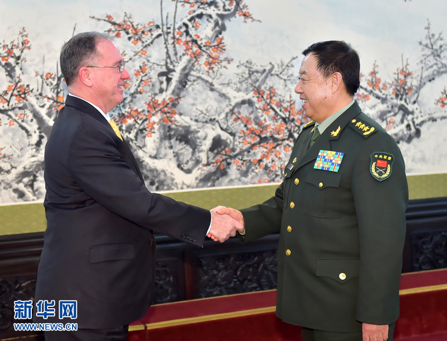 ??? 1月28日,中央軍委副主席范長龍在北京八一大樓會見美國國防部副部長維克斯。 新華社記者李濤攝