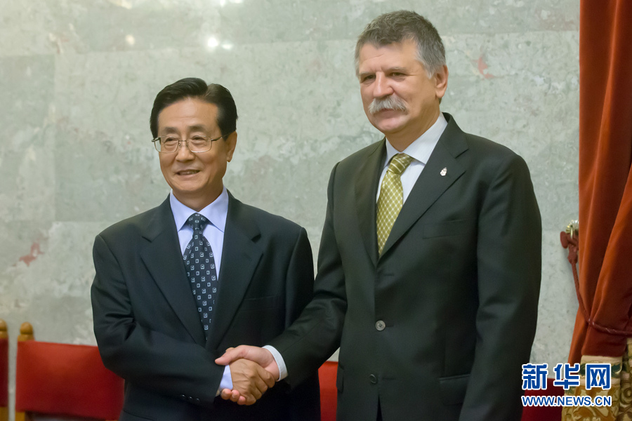 ??? 9月11日,中共中央書(shū)記處書(shū)記、中央紀(jì)委副書(shū)記趙洪祝(左)在匈牙利首都布達(dá)佩斯會(huì)見(jiàn)匈牙利國(guó)會(huì)主席克韋爾。應(yīng)匈牙利執(zhí)政黨青民盟邀請(qǐng),中共中央書(shū)記處書(shū)記、中央紀(jì)委副書(shū)記趙洪祝率中共代表團(tuán)于9月10日至11日訪(fǎng)問(wèn)匈牙利。新華社發(fā)(弗爾季·奧蒂洛攝)