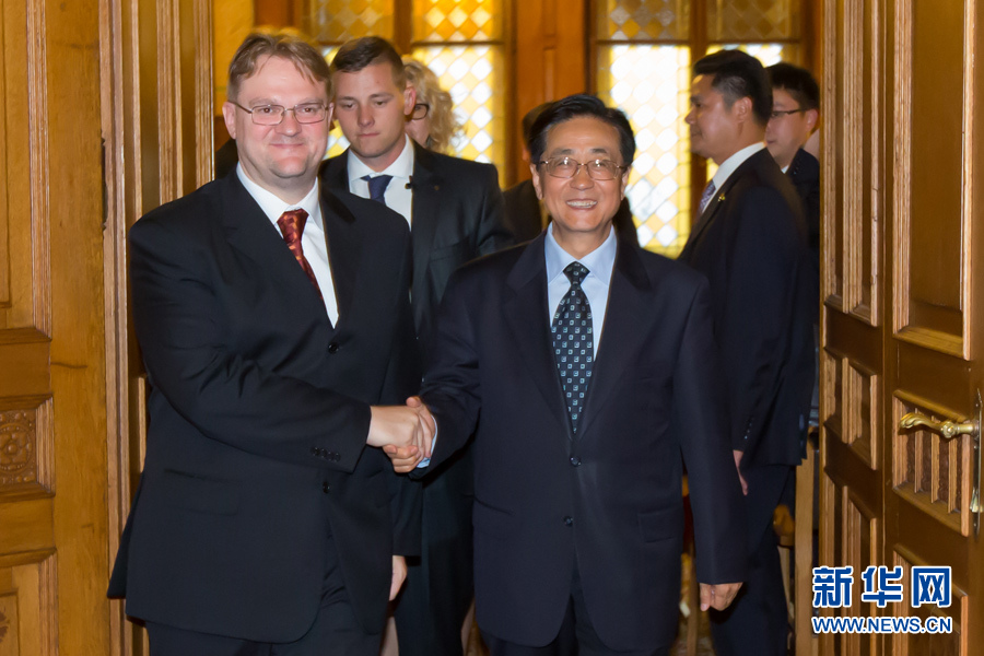 ??? 9月11日,中共中央書記處書記、中央紀(jì)委副書記趙洪祝(右)在布達(dá)佩斯會(huì)見匈牙利司法部國務(wù)秘書雷帕希。應(yīng)匈牙利執(zhí)政黨青民盟邀請(qǐng),中共中央書記處書記、中央紀(jì)委副書記趙洪祝率中共代表團(tuán)于9月10日至11日訪問匈牙利。新華社發(fā)(弗爾季·奧蒂洛攝)