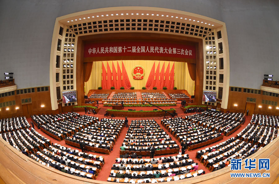 3月12日,十二屆全國(guó)人大三次會(huì)議在北京人民大會(huì)堂舉行第三次全體會(huì)議。 新華社記者 高潔 攝