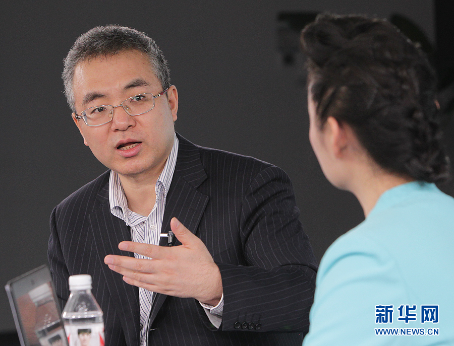 2015年3月13日,中國人民銀行金融研究所所長姚余棟做客新華網(wǎng)2015全國兩會特別訪談。圖為姚余棟解答主持人的問題。 新華網(wǎng) 郭 研 攝