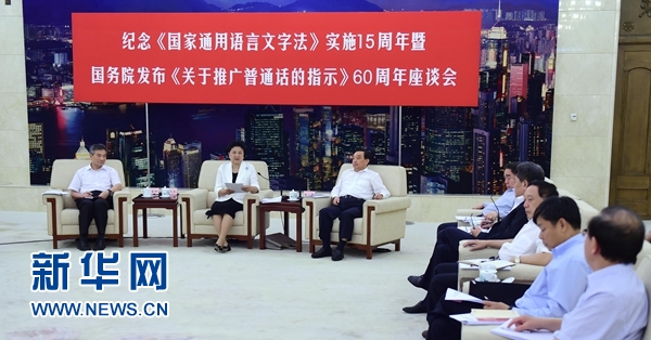 劉延東在紀念《國家通用語言文字法》實施15周年暨國務院發(fā)布《關(guān)于推廣普通話的指示》60周年座談會上強調(diào)